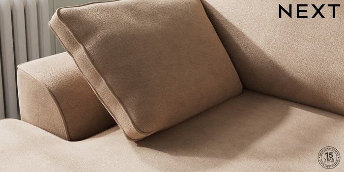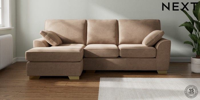 7.2.10 Stamford Medium Sofa Chaise - Left Hand Luxe Chenille Mid Natural Large Square Angle - Brushed Brass | Made Click here to use our website with more accessibility support, for example screen readers