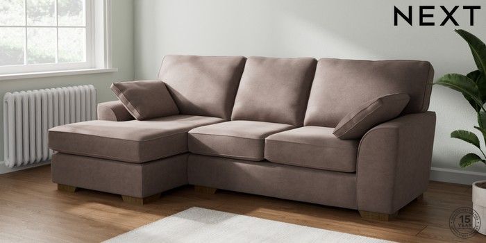 7.2.10 Stamford Medium Sofa Chaise - Left Hand Luxe Chenille Mink Brown Large Square Angle - Mid | Made Click here to use our website with more accessibility support, for example screen readers