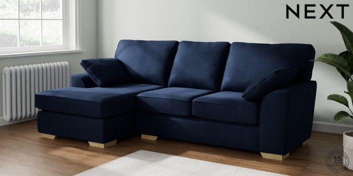7.2.10 Stamford Medium Sofa Chaise - Left Hand Luxe Chenille Navy Blue Large Square Angle - Light | Made Click here to use our website with more accessibility support, for example screen readers