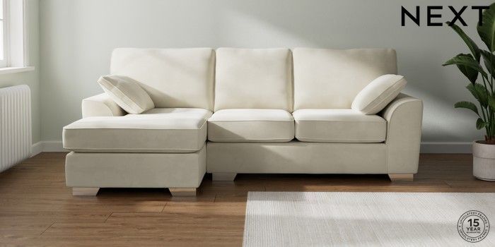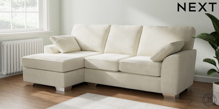 7.2.10 Stamford Medium Sofa Chaise - Left Hand Luxe Chenille Oyster Large Square Angle - Chrome Metal | Made Click here to use our website with more accessibility support, for example screen readers