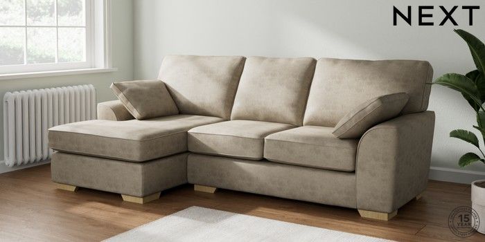 7.2.10 Stamford Medium Sofa Chaise - Left Hand Monza Faux Leather Easy Clean Mink Brown Large Square Angle - Light | Made Click here to use our website with more accessibility support, for example screen readers