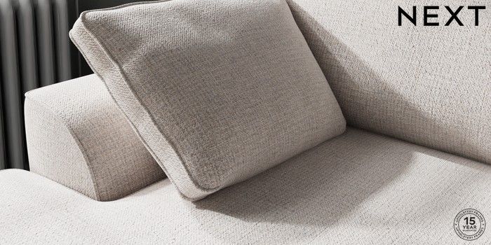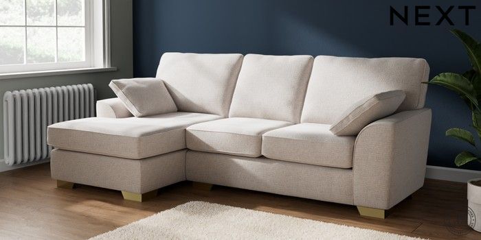 7.2.10 Stamford Medium Sofa Chaise - Left Hand Multi Weave Oyster Large Square Angle - Brushed Brass | Made Click here to use our website with more accessibility support, for example screen readers