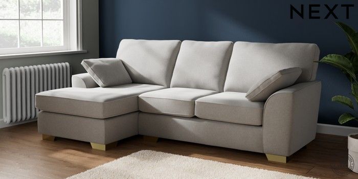 7.2.10 Stamford Medium Sofa Chaise - Left Hand Natural Mix Light Grey Large Square Angle - Brushed Brass | Made Click here to use our website with more accessibility support, for example screen readers