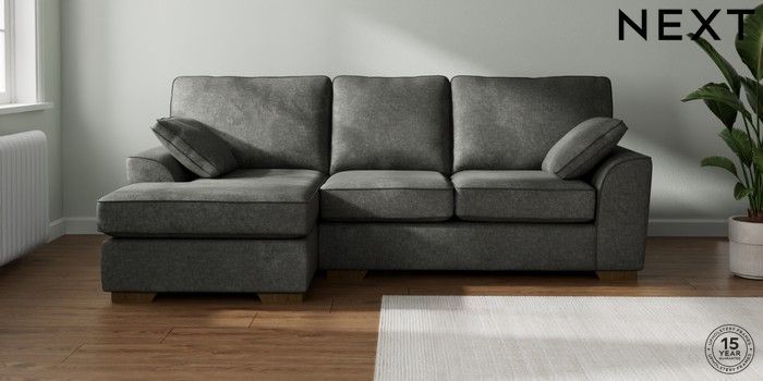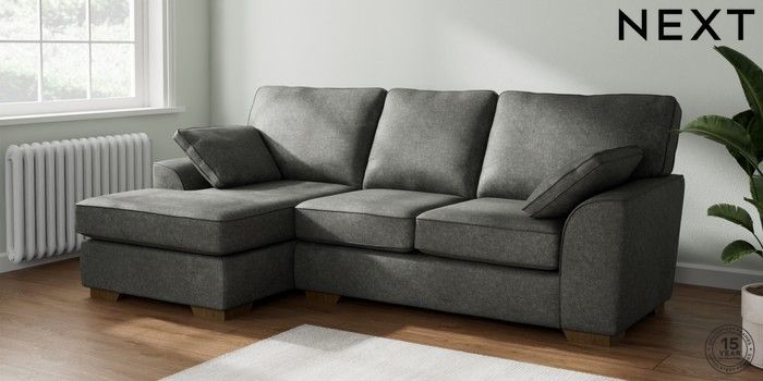 7.2.10 Stamford Medium Sofa Chaise - Left Hand Plush Chenille Dark Grey Large Square Angle - Mid | Made Click here to use our website with more accessibility support, for example screen readers