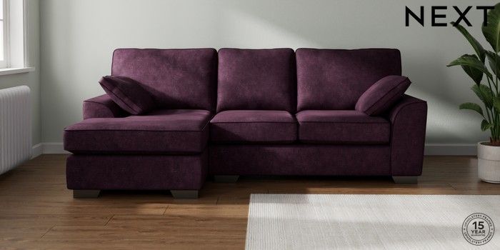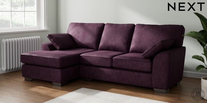 7.2.10 Stamford Medium Sofa Chaise - Left Hand Plush Chenille Dark Plum Purple Large Square Angle - Gunmetal | Made Click here to use our website with more accessibility support, for example screen readers