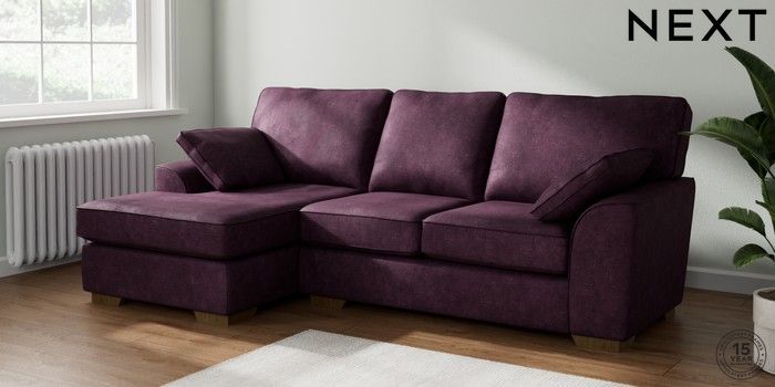 7.2.10 Stamford Medium Sofa Chaise - Left Hand Plush Chenille Dark Plum Purple Large Square Angle - Mid | Made Click here to use our website with more accessibility support, for example screen readers