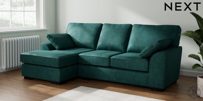 7.2.10 Stamford Medium Sofa Chaise - Left Hand Plush Chenille Dark Teal Green Large Square Angle - Dark | Made Click here to use our website with more accessibility support, for example screen readers