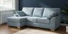 7.2.10 Stamford Medium Sofa Chaise - Left Hand Plush Chenille Light Blue Large Square Angle - Brushed Brass | Made Click here to use our website with more accessibility support, for example screen readers