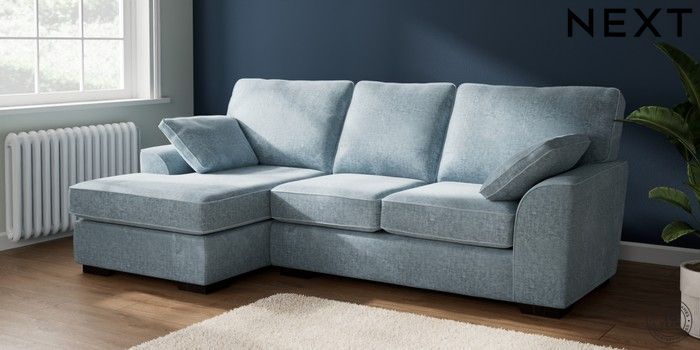 7.2.10 Stamford Medium Sofa Chaise - Left Hand Plush Chenille Light Blue Large Square Angle - Dark | Made Click here to use our website with more accessibility support, for example screen readers
