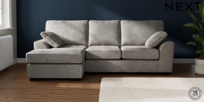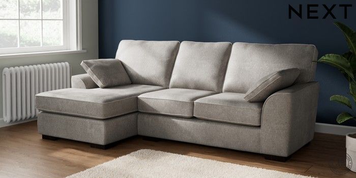 7.2.10 Stamford Medium Sofa Chaise - Left Hand Plush Chenille Light Grey Large Square Angle - Dark | Made Click here to use our website with more accessibility support, for example screen readers