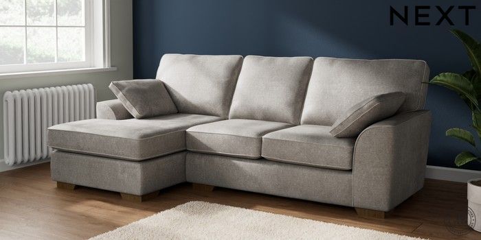 7.2.10 Stamford Medium Sofa Chaise - Left Hand Plush Chenille Light Grey Large Square Angle - Mid | Made Click here to use our website with more accessibility support, for example screen readers