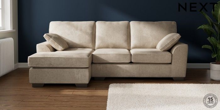 7.2.10 Stamford Medium Sofa Chaise - Left Hand Plush Chenille Light Natural Large Square Angle - Gunmetal | Made Click here to use our website with more accessibility support, for example screen readers