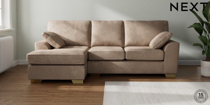 7.2.10 Stamford Medium Sofa Chaise - Left Hand Plush Chenille Mid Natural Large Square Angle - Brushed Brass | Made Click here to use our website with more accessibility support, for example screen readers