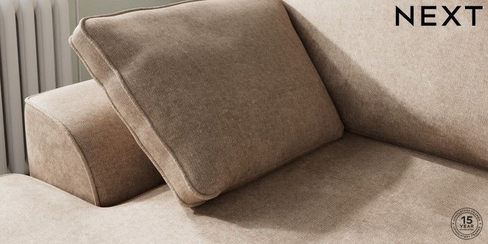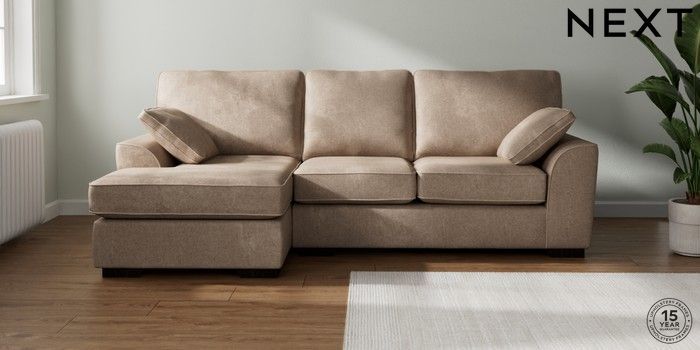 7.2.10 Stamford Medium Sofa Chaise - Left Hand Plush Chenille Mid Natural Large Square Angle - Dark | Made Click here to use our website with more accessibility support, for example screen readers