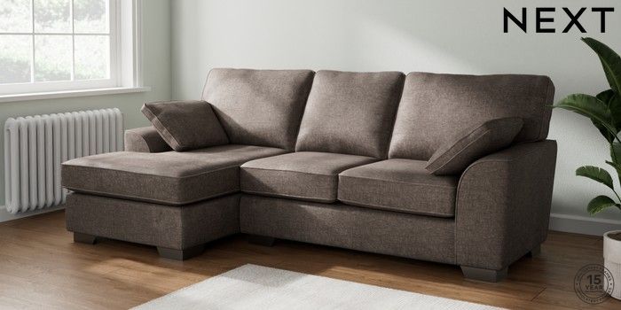 7.2.10 Stamford Medium Sofa Chaise - Left Hand Plush Chenille Mink Brown Large Square Angle - Gunmetal | Made Click here to use our website with more accessibility support, for example screen readers