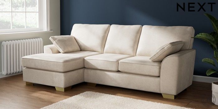 7.2.10 Stamford Medium Sofa Chaise - Left Hand Plush Chenille Oyster Large Square Angle - Brushed Brass | Made Click here to use our website with more accessibility support, for example screen readers
