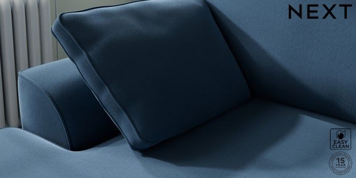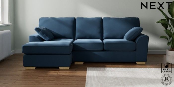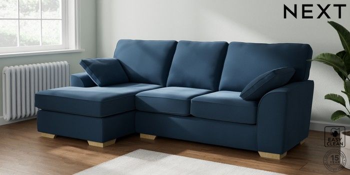 7.2.10 Stamford Medium Sofa Chaise - Left Hand Plush Velvet Easy Clean Airforce Blue Large Square Angle - Light | Made Click here to use our website with more accessibility support, for example screen readers
