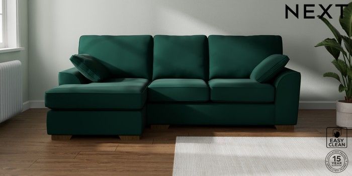 7.2.10 Stamford Medium Sofa Chaise - Left Hand Plush Velvet Easy Clean Bottle Green Large Square Angle - Mid | Made Click here to use our website with more accessibility support, for example screen readers