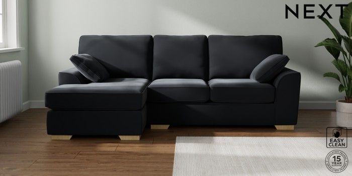 7.2.10 Stamford Medium Sofa Chaise - Left Hand Plush Velvet Easy Clean Charcoal Grey Large Square Angle - Light | Made Click here to use our website with more accessibility support, for example screen readers