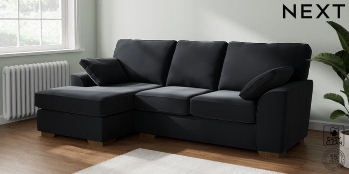 7.2.10 Stamford Medium Sofa Chaise - Left Hand Plush Velvet Easy Clean Charcoal Grey Large Square Angle - Mid | Made Click here to use our website with more accessibility support, for example screen readers