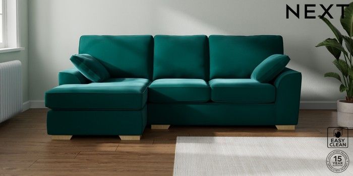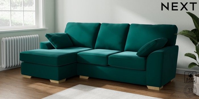 7.2.10 Stamford Medium Sofa Chaise - Left Hand Plush Velvet Easy Clean Juniper Green Large Square Angle - Light | Made Click here to use our website with more accessibility support, for example screen readers