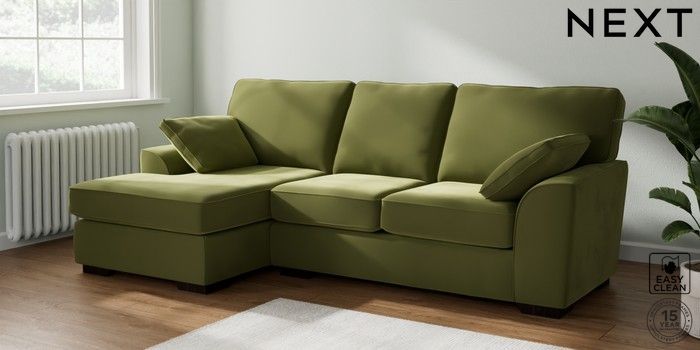 7.2.10 Stamford Medium Sofa Chaise - Left Hand Plush Velvet Easy Clean Mid Olive Green Large Square Angle - Dark | Made Click here to use our website with more accessibility support, for example screen readers