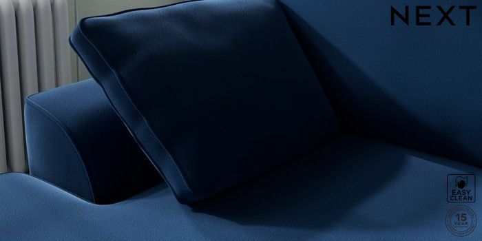 7.2.10 Stamford Medium Sofa Chaise - Left Hand Plush Velvet Easy Clean Navy Blue Large Square Angle - Dark | Made Click here to use our website with more accessibility support, for example screen readers