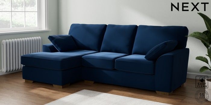 7.2.10 Stamford Medium Sofa Chaise - Left Hand Plush Velvet Easy Clean Navy Blue Large Square Angle - Mid | Made Click here to use our website with more accessibility support, for example screen readers