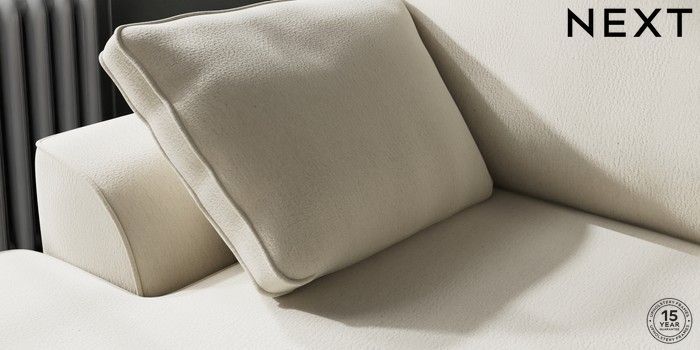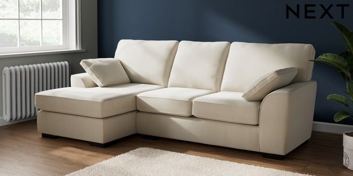 7.2.10 Stamford Medium Sofa Chaise - Left Hand Relaxed Linen Look Oyster Large Square Angle - Dark | Made Click here to use our website with more accessibility support, for example screen readers