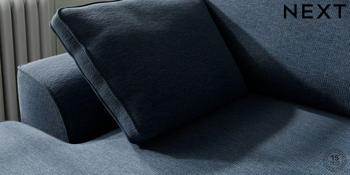 7.2.10 Stamford Medium Sofa Chaise - Left Hand Ripple Chenille Dark Blue Large Square Angle - Brushed Brass | Made Click here to use our website with more accessibility support, for example screen readers