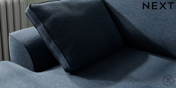 7.2.10 Stamford Medium Sofa Chaise - Left Hand Ripple Chenille Dark Blue Large Square Angle - Chrome Metal | Made Click here to use our website with more accessibility support, for example screen readers