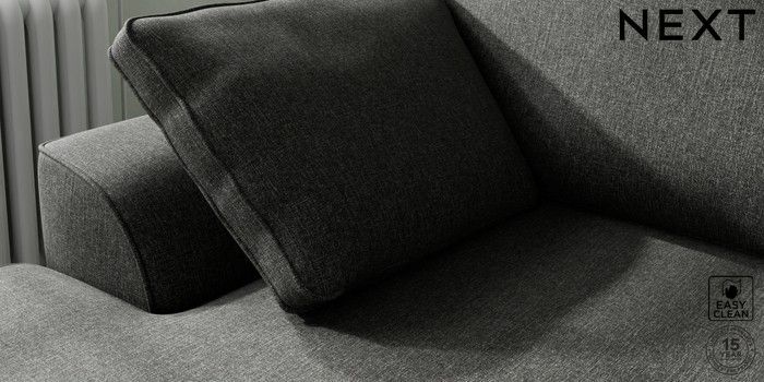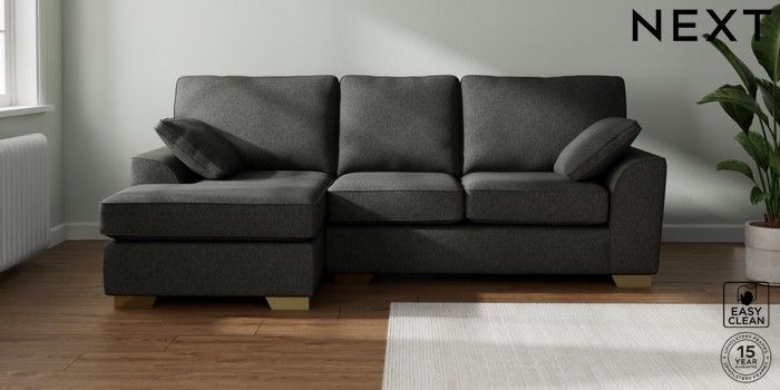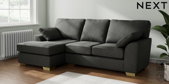 7.2.10 Stamford Medium Sofa Chaise - Left Hand Tweedy Blend Easy Clean Charcoal Grey Large Square Angle - Brushed Brass | Made Click here to use our website with more accessibility support, for example screen readers