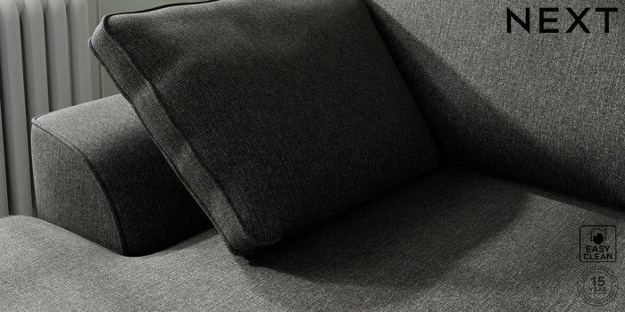 7.2.10 Stamford Medium Sofa Chaise - Left Hand Tweedy Blend Easy Clean Charcoal Grey Large Square Angle - Chrome Metal | Made Click here to use our website with more accessibility support, for example screen readers