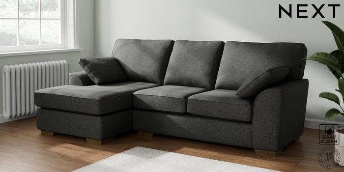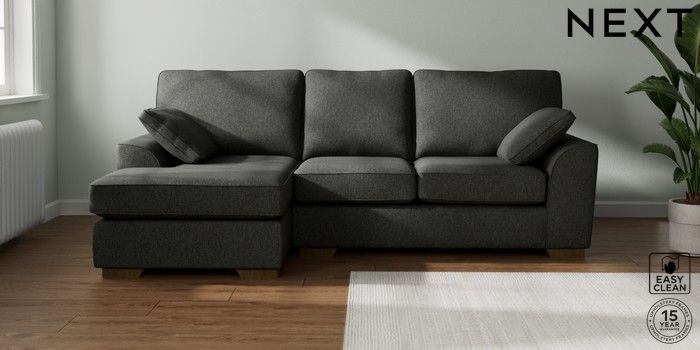 7.2.10 Stamford Medium Sofa Chaise - Left Hand Tweedy Blend Easy Clean Charcoal Grey Large Square Angle - Mid | Made Click here to use our website with more accessibility support, for example screen readers