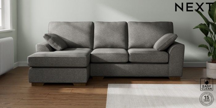 7.2.10 Stamford Medium Sofa Chaise - Left Hand Tweedy Blend Easy Clean Dark Grey Large Square Angle - Mid | Made Click here to use our website with more accessibility support, for example screen readers