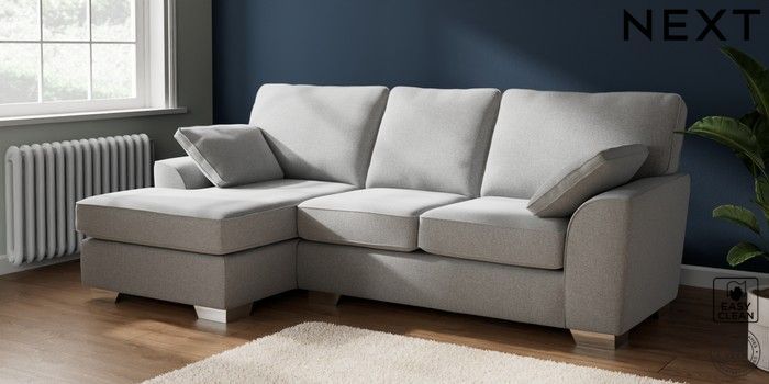 7.2.10 Stamford Medium Sofa Chaise - Left Hand Tweedy Blend Easy Clean Light Silver Grey Large Square Angle - Chrome Metal | Made Click here to use our website with more accessibility support, for example screen readers