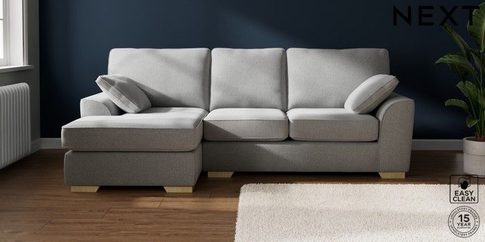 7.2.10 Stamford Medium Sofa Chaise - Left Hand Tweedy Blend Easy Clean Light Silver Grey Large Square Angle - Light | Made Click here to use our website with more accessibility support, for example screen readers