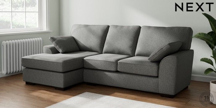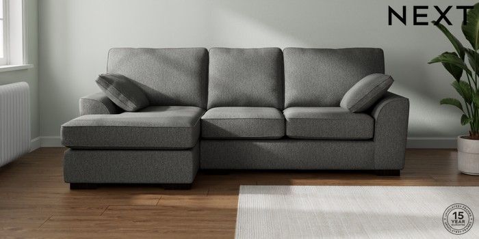 7.2.10 Stamford Medium Sofa Chaise - Left Hand Tweedy Chenille Dark Grey Large Square Angle - Dark | Made Click here to use our website with more accessibility support, for example screen readers
