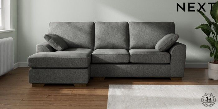 7.2.10 Stamford Medium Sofa Chaise - Left Hand Tweedy Chenille Dark Grey Large Square Angle - Mid | Made Click here to use our website with more accessibility support, for example screen readers