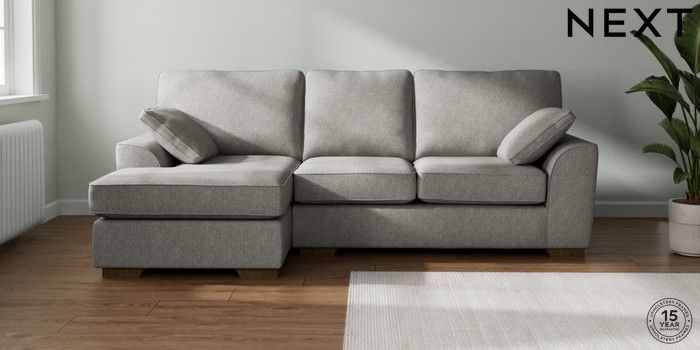 7.2.10 Stamford Medium Sofa Chaise - Left Hand Tweedy Chenille Mid Grey Large Square Angle - Mid | Made Click here to use our website with more accessibility support, for example screen readers