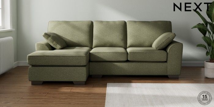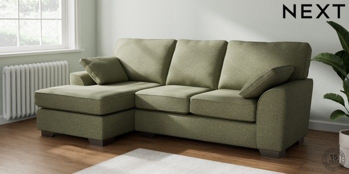 7.2.10 Stamford Medium Sofa Chaise - Left Hand Tweedy Chenille Mid Moss Green Large Square Angle - Gunmetal | Made Click here to use our website with more accessibility support, for example screen readers