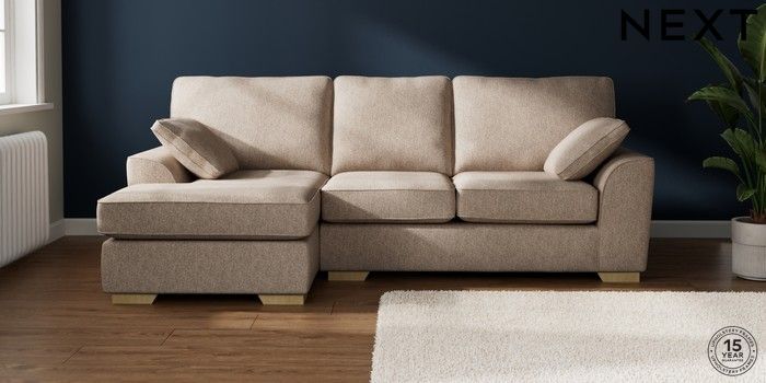 7.2.10 Stamford Medium Sofa Chaise - Left Hand Tweedy Chenille Mid Natural Large Square Angle - Light | Made Click here to use our website with more accessibility support, for example screen readers
