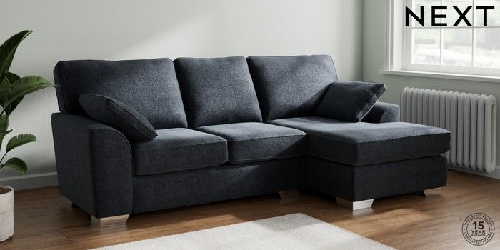 7.2.10 Stamford Medium Sofa Chaise - Right Hand Boucle Chenille Dark Slate Blue Large Square Angle - Chrome Metal | Made Click here to use our website with more accessibility support, for example screen readers