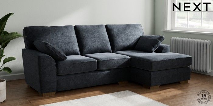 7.2.10 Stamford Medium Sofa Chaise - Right Hand Boucle Chenille Dark Slate Blue Large Square Angle - Mid | Made Click here to use our website with more accessibility support, for example screen readers