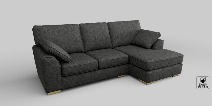 7.2.10 Stamford Medium Sofa Chaise - Right Hand Boucle Weave Easy Clean Charcoal Grey Large Square Angle - Brushed Brass | Made Click here to use our website with more accessibility support, for example screen readers