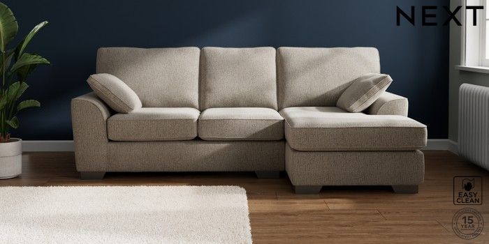 7.2.10 Stamford Medium Sofa Chaise - Right Hand Chunky Boucle Easy Clean Dove Large Square Angle - Gunmetal | Made Click here to use our website with more accessibility support, for example screen readers