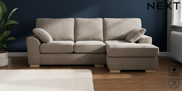 7.2.10 Stamford Medium Sofa Chaise - Right Hand Chunky Boucle Easy Clean Dove Large Square Angle - Light | Made Click here to use our website with more accessibility support, for example screen readers