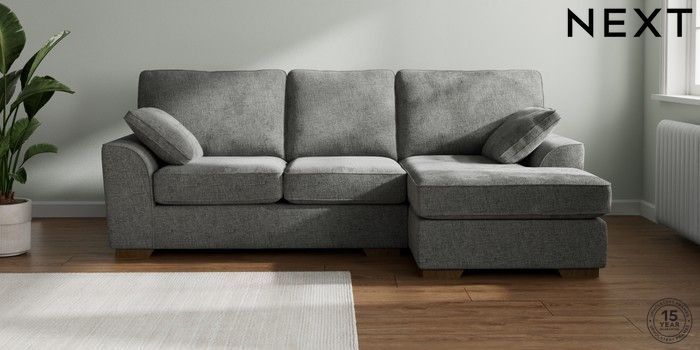 7.2.10 Stamford Medium Sofa Chaise - Right Hand Chunky Chenille Dark Grey Large Square Angle - Mid | Made Click here to use our website with more accessibility support, for example screen readers