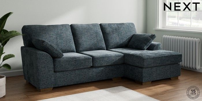 7.2.10 Stamford Medium Sofa Chaise - Right Hand Chunky Chenille Dark Navy Blue Large Square Angle - Mid | Made Click here to use our website with more accessibility support, for example screen readers