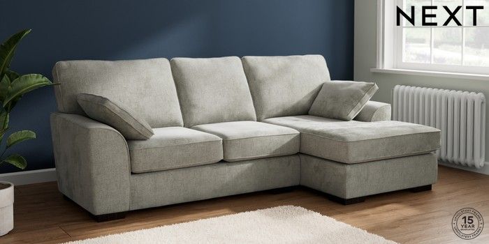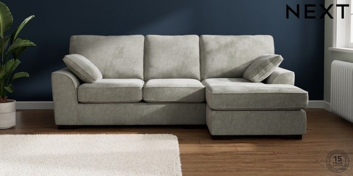 7.2.10 Stamford Medium Sofa Chaise - Right Hand Chunky Chenille Light Grey Large Square Angle - Dark | Made Click here to use our website with more accessibility support, for example screen readers